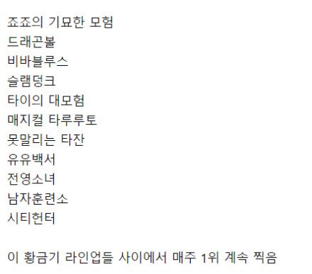 일본에서 드래곤볼 1위찍던 당시 소년점프 작품들 페이지 정보 작성자 티끌모아태산태산 작성일 24-05-08 12:51 조회 3,321 댓글 0 본문 이전글 17.5금) 어쩜 이렇게 동그랗니? 다음글 오빠 난 몇번 째 여친이얌?? 댓글목록 0 등록된 댓글이 없습니다.