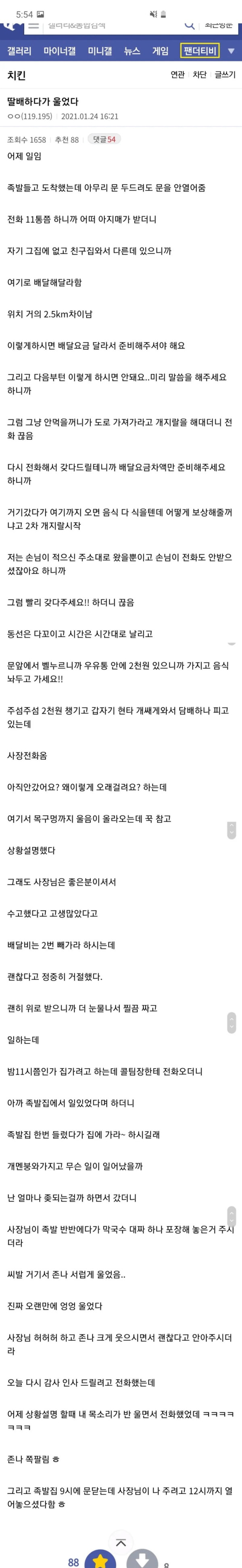 족발 배달하다가 울었음 > 유머/감동