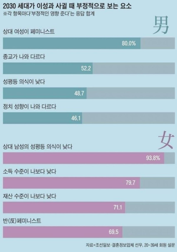 2030 세대가 이성과 사귈 때 부정적으로 보는 요소