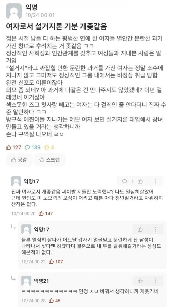 설거지론 을 보고 단단히 화가 난 여자.JPG 페이지 정보 작성자 난쟁이가쏘아올린작은공인인증서 댓글 0건 조회 3,356회 작성일 24-03-12 11:56 목록 답변 글쓰기 게시판 리스트 옵션 수정 삭제 본문 . 쿠팡 파트너스 활동의 일환으로, 이에 따른 일정액의 수수료를 제공받습니다. 이전글세입자 걸러 받아야 하는 이유 24.03.12 다음글인라인 스케이트 묘기 24.03.12 댓글 0 댓글목록 등록된 댓글이 없습니다.