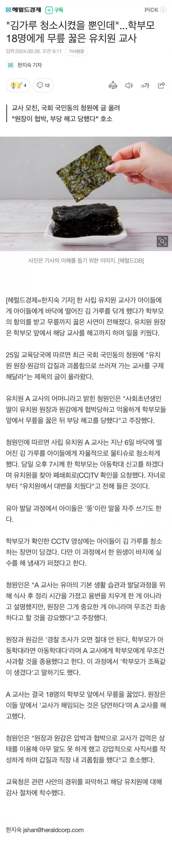 김가루 청소시켰다고 무릎 꿇은 유치원 교사6