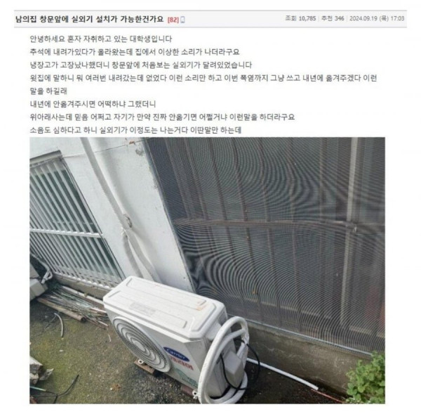 남의집 창문앞 실외기 설치가 가능한가요?17