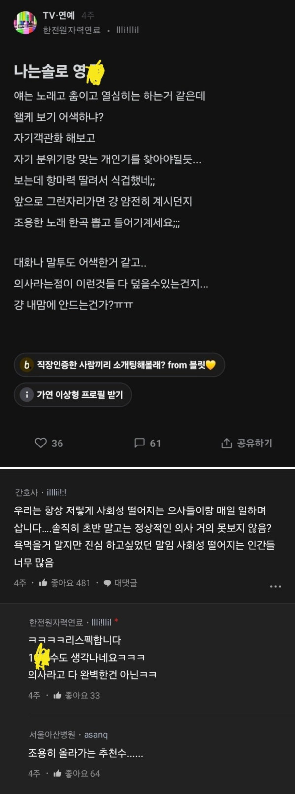 나는솔로 보고 전문직 환상이 깨졌다는 사람