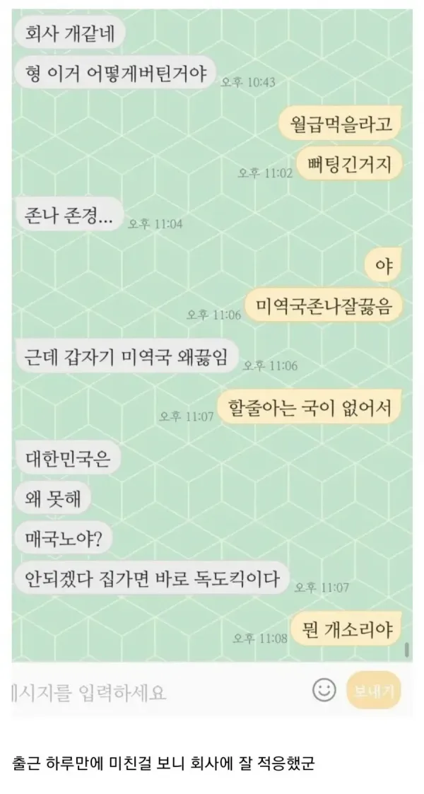 회사 첫출근한 동생의 카톡 페이지 정보 작성자 오더가다 댓글 0건 조회 3,472회 작성일 24-04-02 13:40 목록 답변 글쓰기 게시판 리스트 옵션 수정 삭제 본문 . 쿠팡 파트너스 활동의 일환으로, 이에 따른 일정액의 수수료를 제공받습니다. 이전글몸으로만 말하는 재미있는 이야기 24.04.02 다음글상남자의 물티슈 사용법 24.04.02 댓글 0 댓글목록 등록된 댓글이 없습니다.