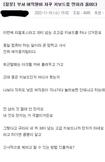 여직원이 키보드를 만지고 싶어해요 페이지 정보 작성자 닉넴어렵네에 댓글 0건 조회 3,321회 작성일 24-04-15 11:01 목록 답변 글쓰기 게시판 리스트 옵션 수정 삭제 본문 쿠팡 파트너스 활동의 일환으로, 이에 따른 일정액의 수수료를 제공받습니다. 이전글하루에 민원 20건씩 넣던 인간의 정체 24.04.15 다음글현재 의사들이 복귀 하고 싶어도 못하는 이유 24.04.15 댓글 0 댓글목록 등록된 댓글이 없습니다.