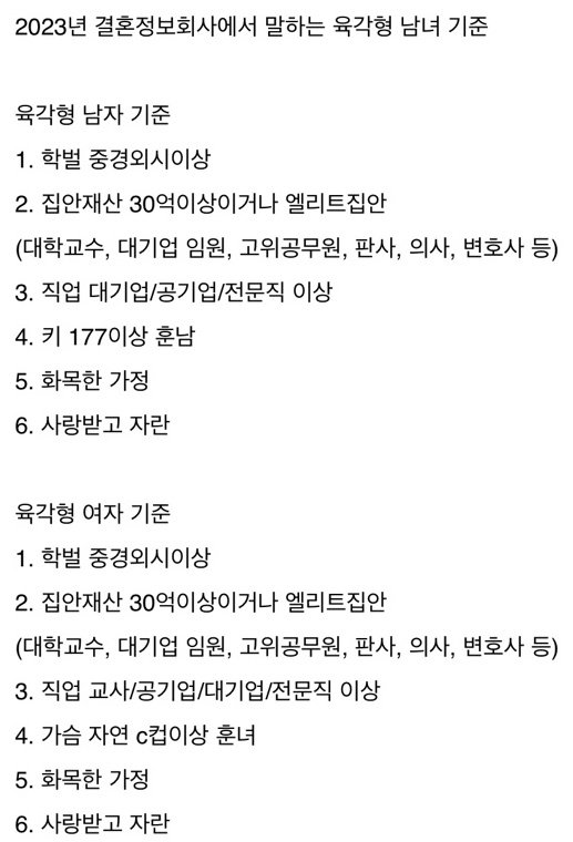 2023년 결혼시장 1티어라는 육각형 여자 기준