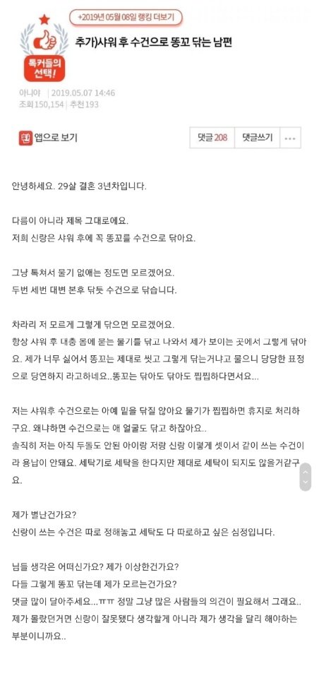 샤워 후 수건으로 똥꼬 닦는 남편11
