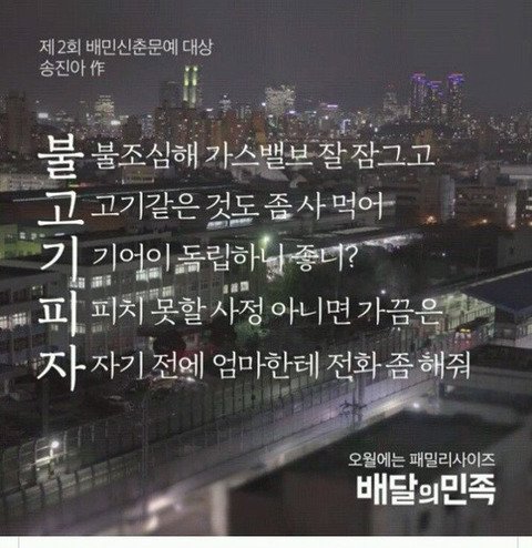 배달의 민족 `불고기피자`5행시로 대상 받은 글 페이지 정보 작성자 김서서코 댓글 0건 조회 2,715회 작성일 24-07-22 17:30 목록 답변 글쓰기 게시판 리스트 옵션 수정 삭제 본문 배달의 민족 `불고기피자`5행시로 대상 받은 글 쿠팡 파트너스 활동의 일환으로, 이에 따른 일정액의 수수료를 제공받습니다. 이전글내가 로또번호 알아옴 24.07.22 다음글서울대생의 일침 24.07.22 댓글 0 댓글목록 등록된 댓글이 없습니다.