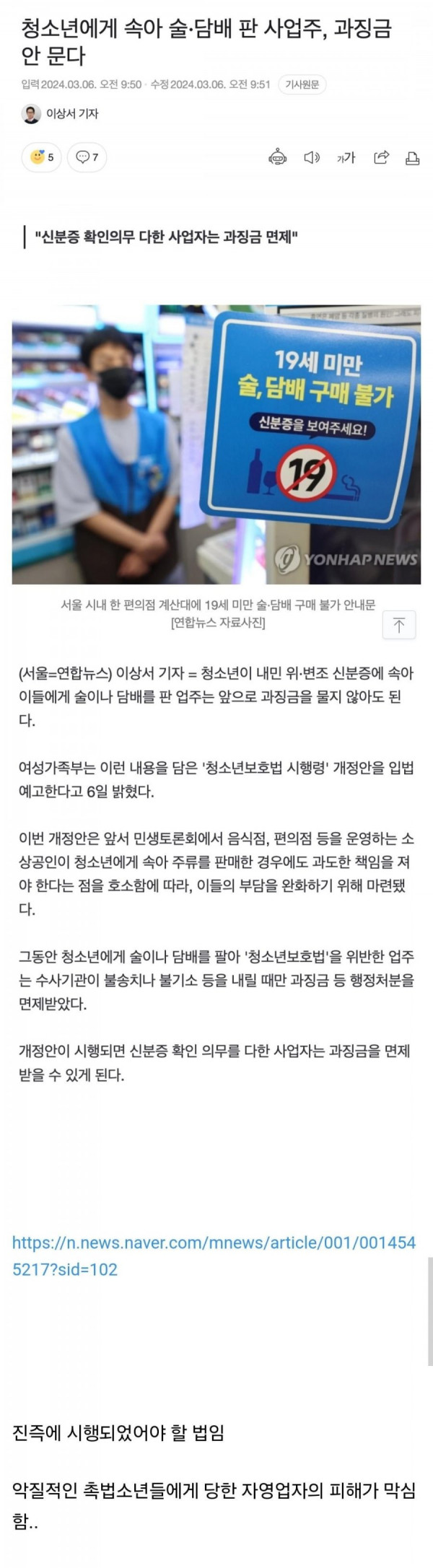 청소년에게 속아 술 담배 판 사업주 과징금 안 문다