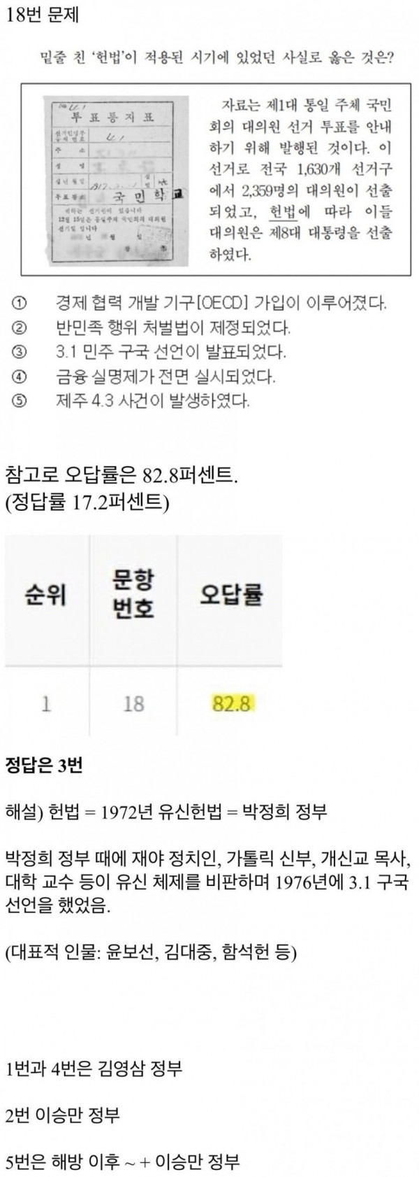 작년 수능 한국사에서 가장 오답률이 높았던 문제