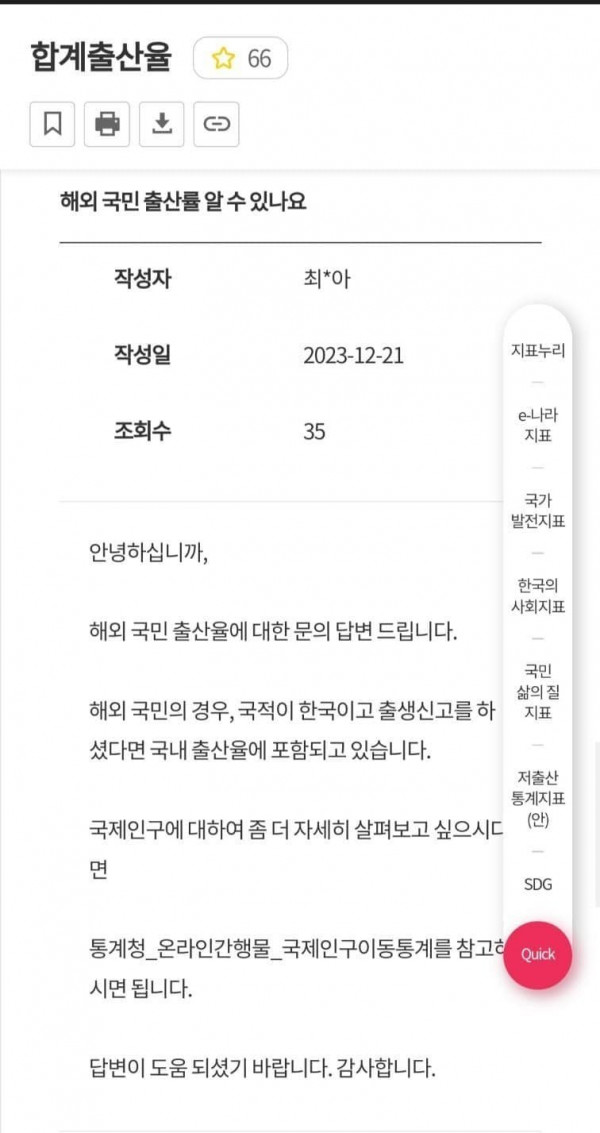 출산율 0.6명대는 재외동포 포함한 수치 > 유머/감동