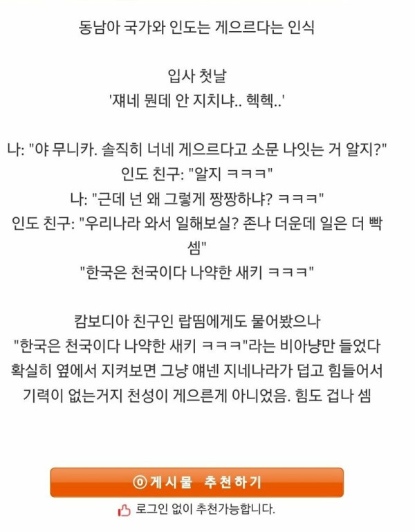 공장 알바하면서 외노자들에 대한 편견이 깨졌던 거