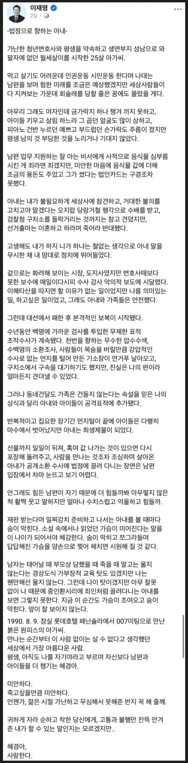 어느 남편이 부인에게 쓴 편지