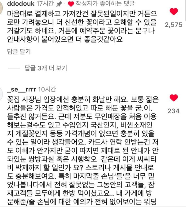 인스타에서 꽃집 사장님 잘못이다 vs 손님 잘못이다 갈리는 영상3