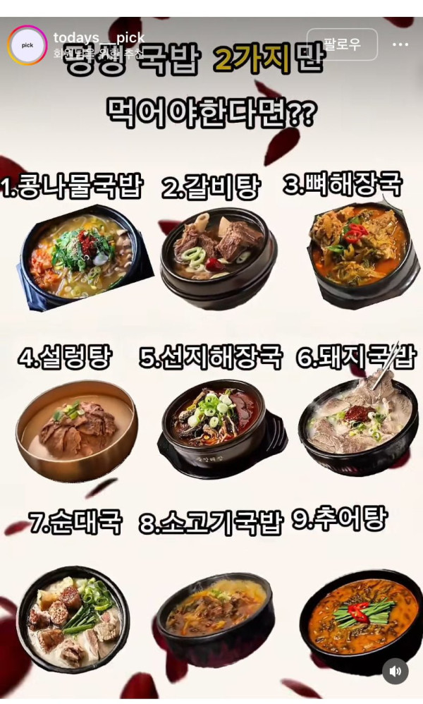 평생동안 국밥 2가지만 먹는다면? jpg81 > 유머/감동