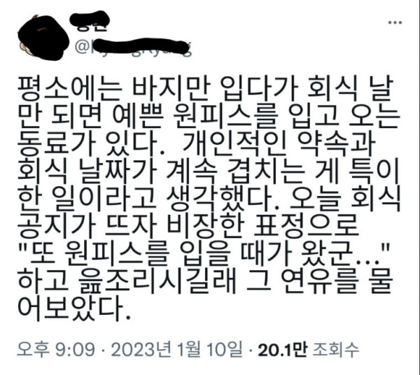 회식날에만 예쁜 원피스를 입는이유1 > 유머/감동