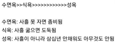 수면욕>식욕>>>>>>>>>>>>성욕48