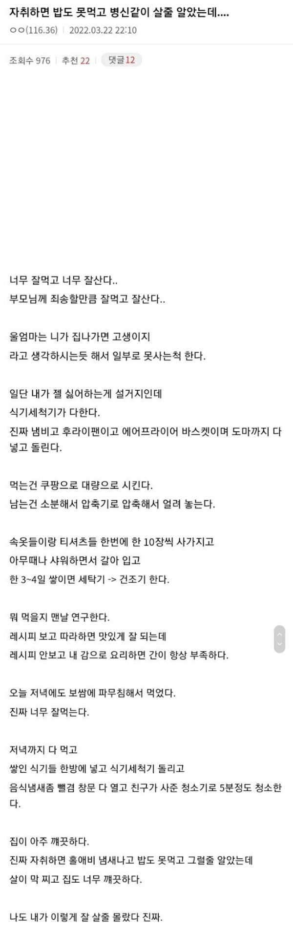 자취하면 ㅂㅅ같이 살 줄 알았던 디씨인9 > 유머/감동