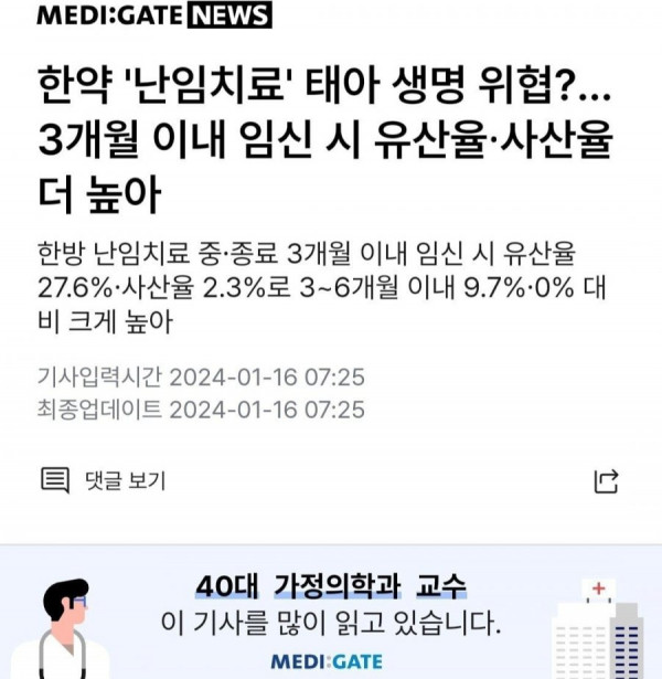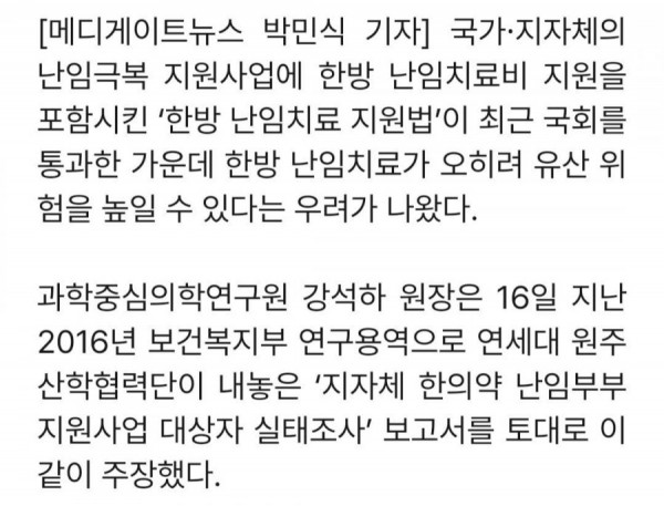 한방 난임치료가 오히려 산모의 유산 위험 높일 수 있다