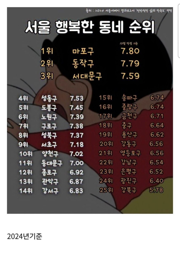 서울 구별 삶의 만족도 순위3 > 유머/감동