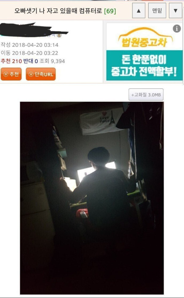자고있는 여동생 컴퓨터로 이상한짓 하는 오빠