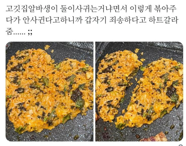 고깃집 아르바이트생들이 볶음밥 하트 모양으로 볶아주다가5