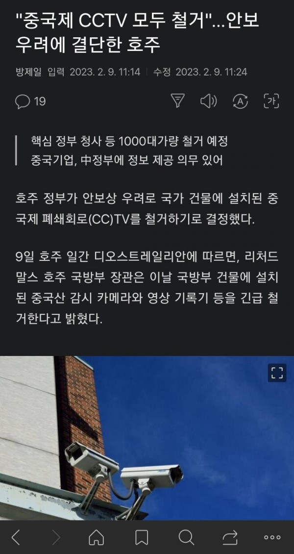 호주 "중국제 CCTV 모두 철거" 안보우려2