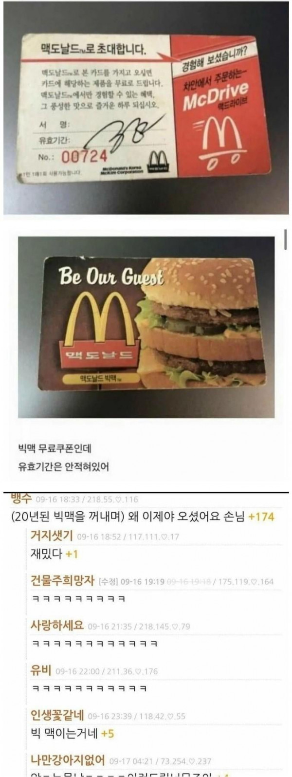 20년 존버한 맥도날드 빅맥 무료 쿠폰 페이지 정보 작성자 티티티티파파파파 댓글 0건 조회 2,859회 작성일 24-04-01 11:48 목록 답변 글쓰기 게시판 리스트 옵션 수정 삭제 본문 . 쿠팡 파트너스 활동의 일환으로, 이에 따른 일정액의 수수료를 제공받습니다. 이전글엄마와 딸 24.04.01 다음글해리포터 작가가 처음에 퇴짜를 여러번 맞은 이유 24.04.01 댓글 0 댓글목록 등록된 댓글이 없습니다.