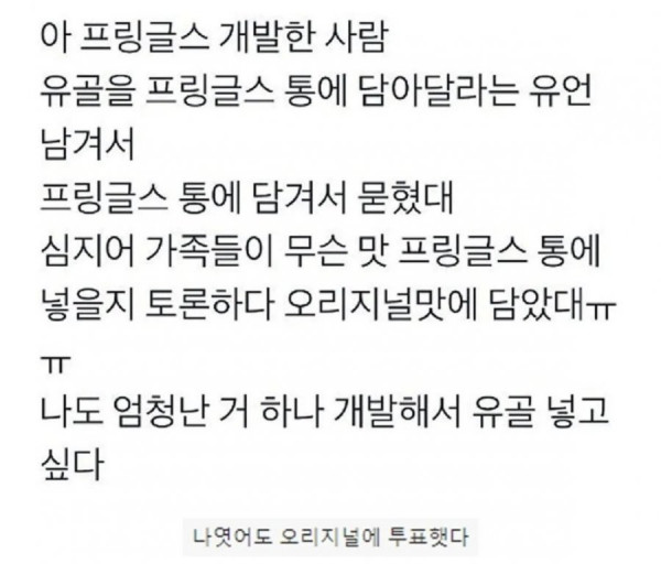 프링글스 개발자의 유언 ㄷ..JPG 페이지 정보 작성자 언젠가는 댓글 0건 조회 3,392회 작성일 24-04-01 18:08 목록 답변 글쓰기 게시판 리스트 옵션 수정 삭제 본문 . 쿠팡 파트너스 활동의 일환으로, 이에 따른 일정액의 수수료를 제공받습니다. 이전글1500년대에 지어진 조각상 수준 24.04.02 다음글2024 발롱도르 파워랭킹 근황JPG 24.04.01 댓글 0 댓글목록 등록된 댓글이 없습니다.
