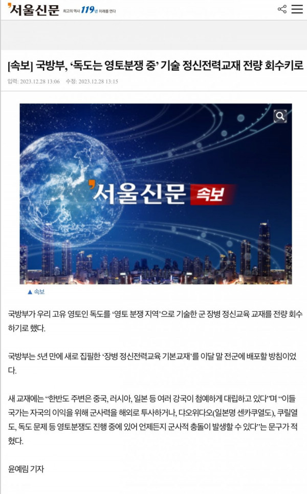 국방부: 독도, 분쟁지역 아니야 페이지 정보 작성자 최선민 댓글 0건 조회 3,139회 작성일 24-04-03 13:13 목록 답변 글쓰기 게시판 리스트 옵션 수정 삭제 본문 . 쿠팡 파트너스 활동의 일환으로, 이에 따른 일정액의 수수료를 제공받습니다. 이전글지역별 순대 소스 24.04.03 다음글집에서 파스타 해먹으면 생기는 일 24.04.03 댓글 0 댓글목록 등록된 댓글이 없습니다.