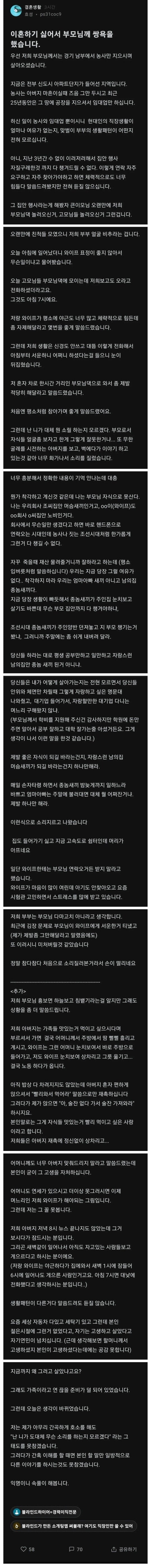 이혼하기 싫어서 부모님한테 쌍욕했습니다.