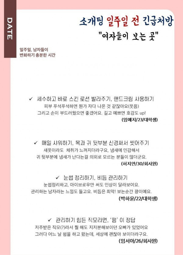 소개팅하기전 남자들에게 바라는 여자들의 조건