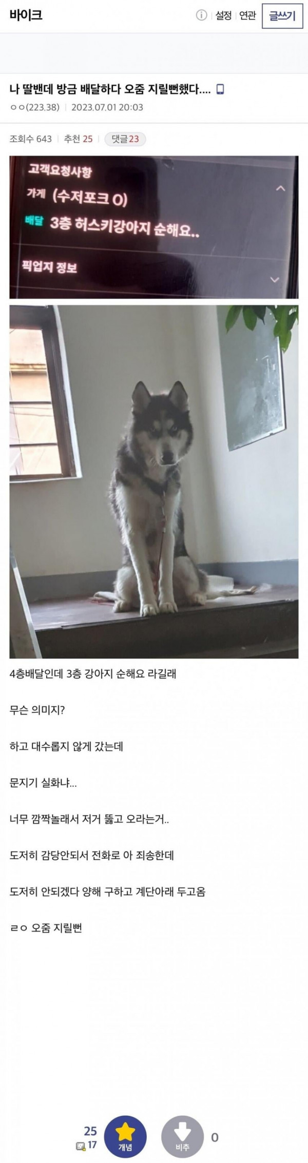 딸배 배달하다 오줌 지릴뻔 ㄷ..JPG  > 유머/감동