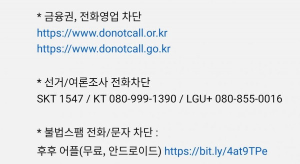 여론조사 전화 안오게 하는법. jpg 페이지 정보 작성자 오덕킹 댓글 0건 조회 461회 작성일 24-03-08 16:25 목록 답변 글쓰기 게시판 리스트 옵션 수정 삭제 본문 skt 1547 kt 080-999-1390 lgu+ 080-855-0016 쿠팡 파트너스 활동의 일환으로, 이에 따른 일정액의 수수료를 제공받습니다. 이전글올해 서울 청년수당 모집시작했네요 24.03.12 다음글카톡으로 광고전화 + 선거전화 차단하는법 24.03.08 댓글 0 댓글목록 등록된 댓글이 없습니다.