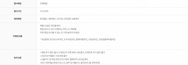 [KFC] 매월 11일은? 치킨올데이! 하루종일 치킨이 1+1~ 페이지 정보 작성자 티끌모아파산 작성일 24-01-10 16:44 조회 496 댓글 0 본문 이전글 자취필수품 교체주기 다음글 [한솥도시락] 요일마다 인기메뉴 매일할인! 댓글목록 0 등록된 댓글이 없습니다.